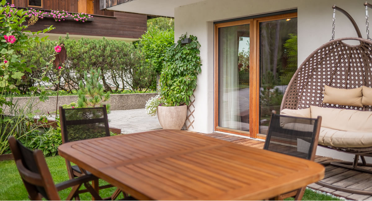 due bagni con wc, bidet, doccia e uscita sul giardino.