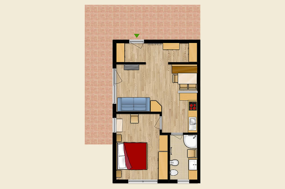 Appartamento situato al piano terra, arredato in legno di cirmolo.